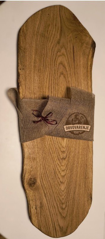 Prirodna, ručno rađena hrastova daska koja svojim oblikom i teksturom unosi toplinu i rustičnu eleganciju na svaki sto. Obrađena prirodnim uljem, spremna za upotrebu.