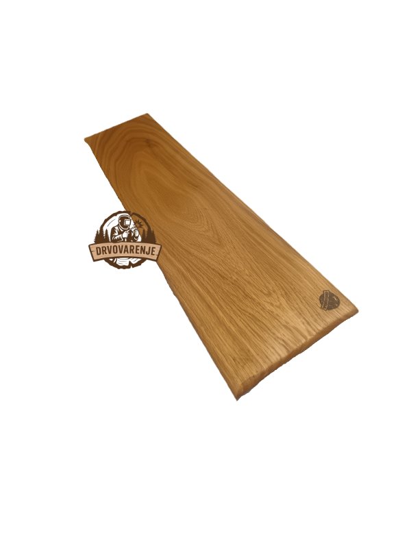 Ova daska izrađena je od hrastovog drveta koje je kupac sam obezbedio, sa željom da se od postojećeg komada napravi upotrebljiv i estetski oblikovan predmet za svakodnevno serviranje. Takvi radovi imaju posebnu vrednost jer zadržavaju lični pečat i priču materijala.