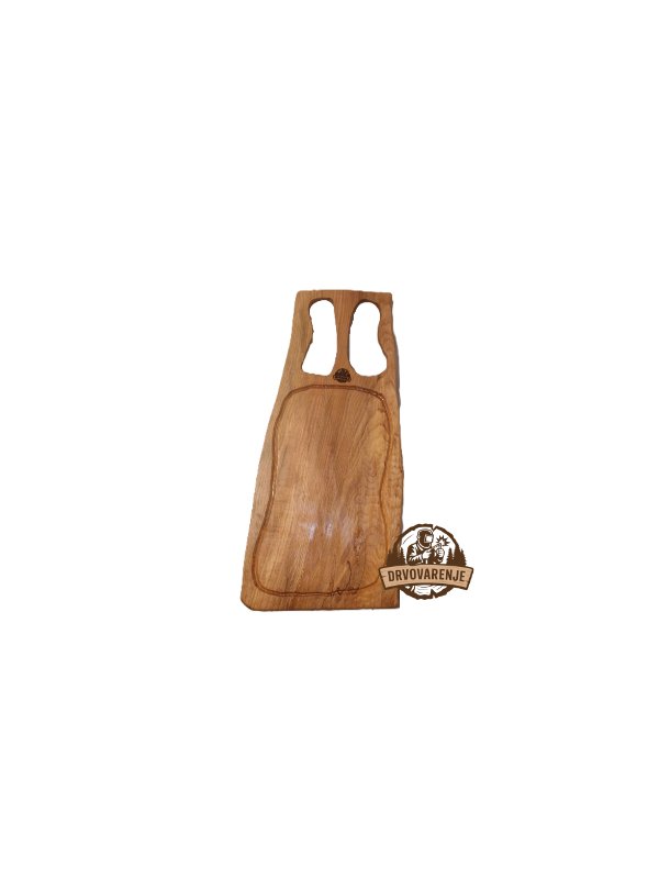 Izdubljena površina i praktični otvori za držanje omogućavaju lako serviranje i sigurno rukovanje, dok prirodna tekstura hrasta daje toplinu i karakter svakom prostoru.