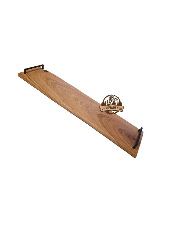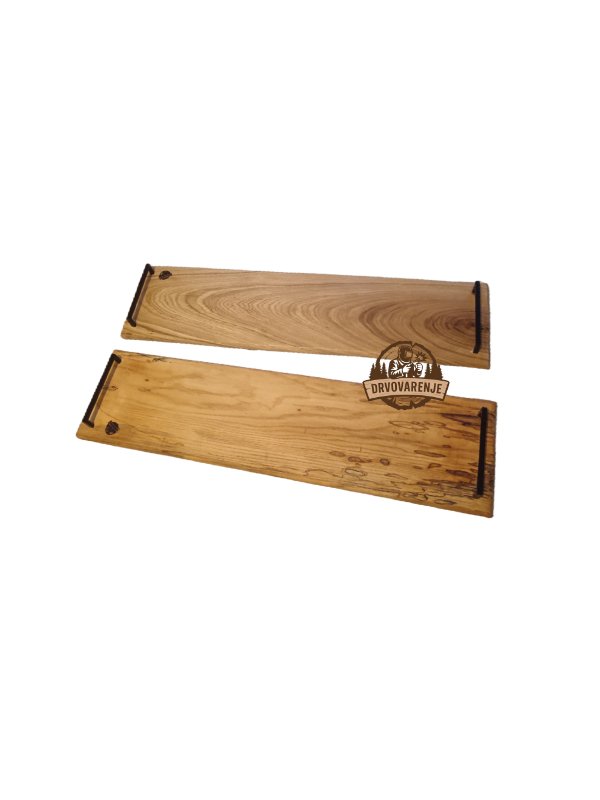 Elegantna, izdužena daska za serviranje izrađena od prirodnog drveta lipe, dodatno oplemenjena crnim metalnim ručkama koje omogućavaju lakše nošenje i efektno posluživanje. Svaki komad ima jedinstvenu teksturu drveta i prirodne šare koje daju autentičan rustičan izgled.
