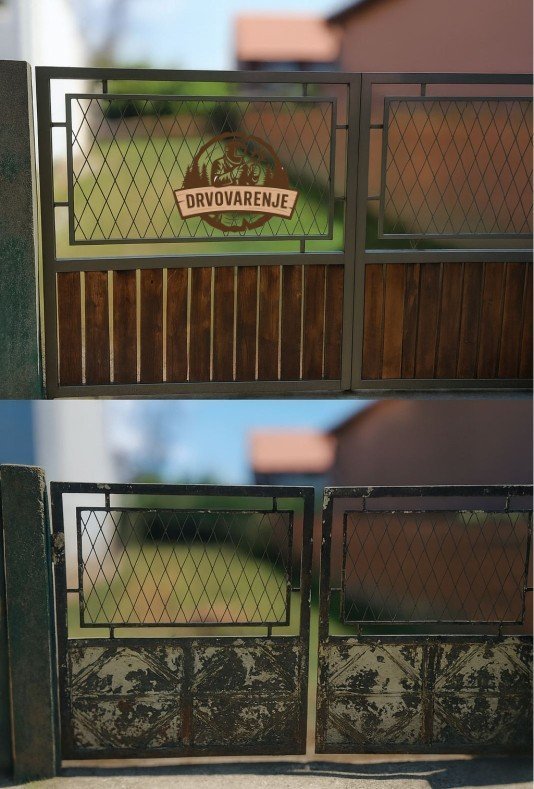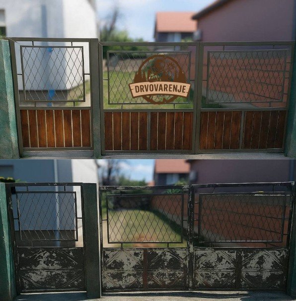 Ograda je detaljno restaurirana kako bi joj se vratila prvobitna čvrstina i estetska vrednost. Kompletna metalna konstrukcija je smirglana i pripremljena, a zatim zaštićena i kvalitetno ofarbana. Donji, dotrajali metalni paneli su u potpunosti zamenjeni prirodnim drvetom, čime je postignut topliji izgled i znatno dugotrajnija izdržljivost.